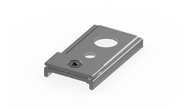 STAFFA CORTA CON FORO PER TENDITORE AUTOMATICO PER CAVO IN ACCIAIO, PER FISSAGGIO A SOSPENSIONE DEL BINARIO