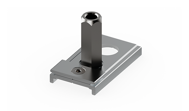 STAFFA CON FORO FILETTATO M13, PER FISSAGGIO A SOSPENSIONE RIGIDA, IN FILA CONTINUA, DEL BINARIO